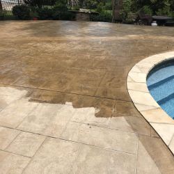 Unlike other water based stains, StampStone® Liquid Stains are produced without sealers in the product, giving us freedom to modify stained garage floors after initial application. It also allows for custom modeling and accenting for creating additional finish options. Once the desired effect has been achieved we seal the beautiful colors with an Acrylic, Epoxy-Urethane or Polyurethane coating to protect the floor from wear and to ensure years of beauty and durability.